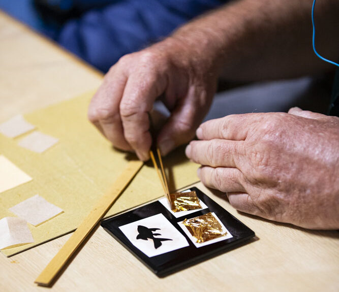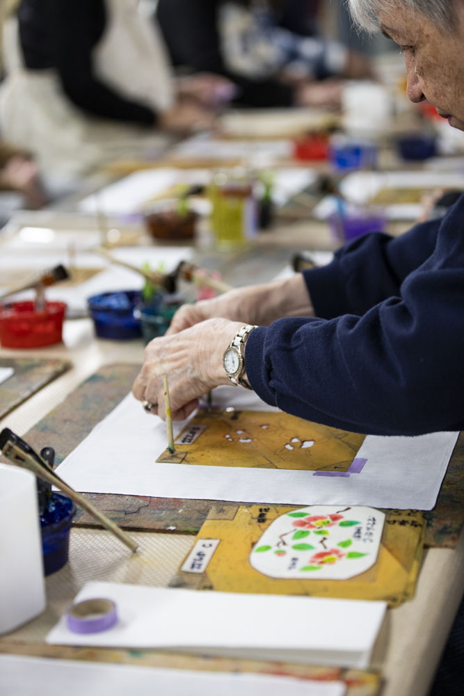 Next, we did a gold-leaf lacquer box workshop. It was soothing and creative, and everyone got into it. Some masterpieces emerged, some… happy accidents 😅