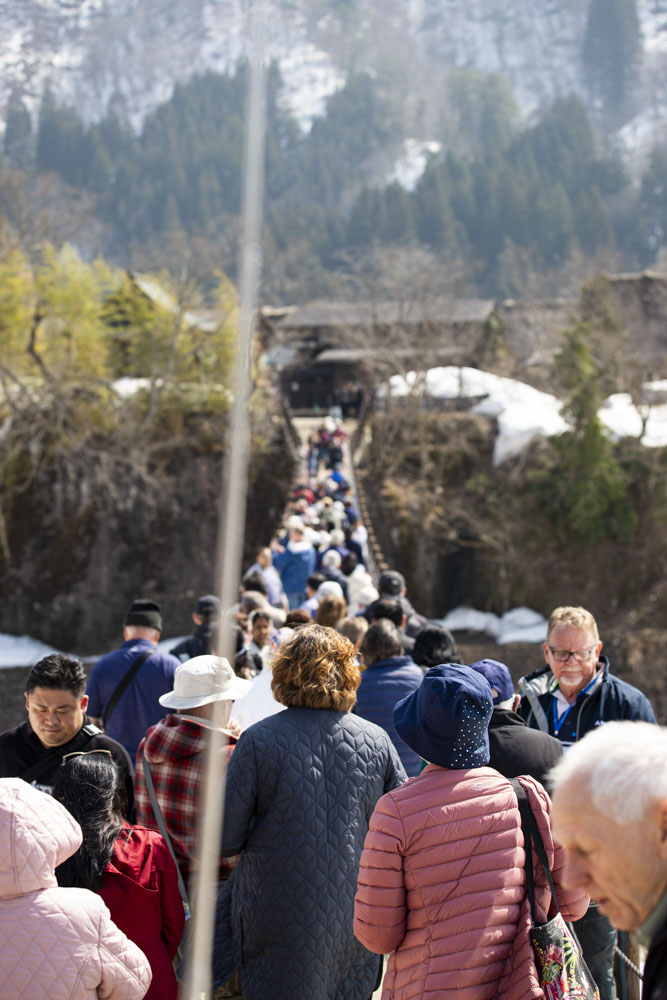 We hit the road again, heading toward the mountain towns of Matsumoto and Takayama. Along the way, we stopped at Matsumoto Castle — a black-and-white samurai fortress that looks like it stepped out of a movie. We even saw our first proper cherry blossoms mixed with plum trees.