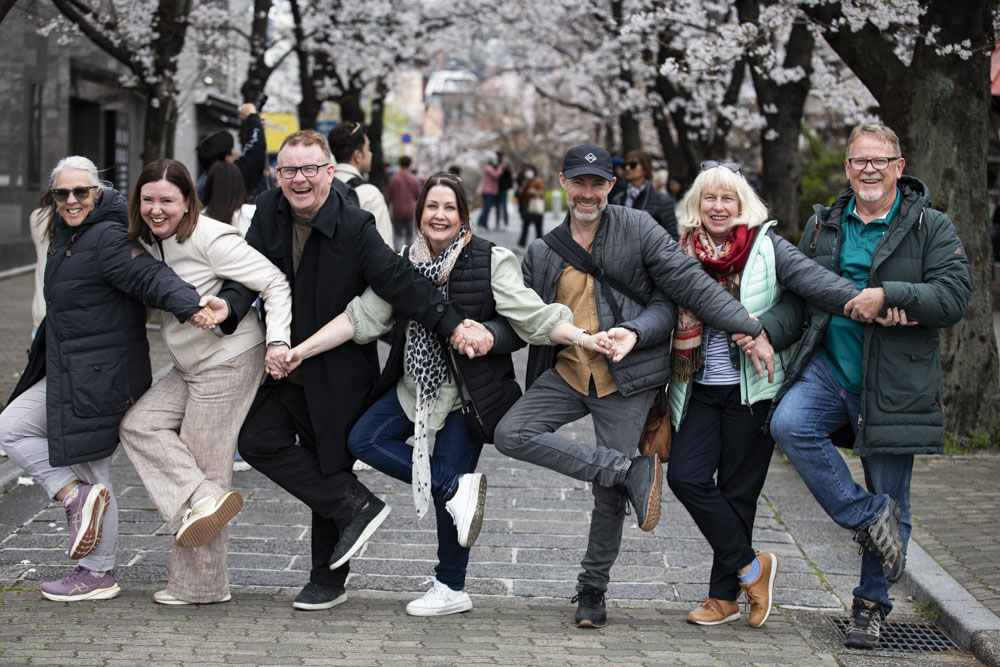 Later, I joined a group doing a kimono experience. Everyone looked stunning! We wandered cherry blossom-lined alleys, took dozens of photos, and just soaked it in. That evening, we wrapped up the trip with a five-course dinner and a performance from a real Maiko (Geisha in training). Nobuko even led us in one last dance — and everyone joined in. Laughter, tears, hugs, and gratitude all around. A magical farewell.
