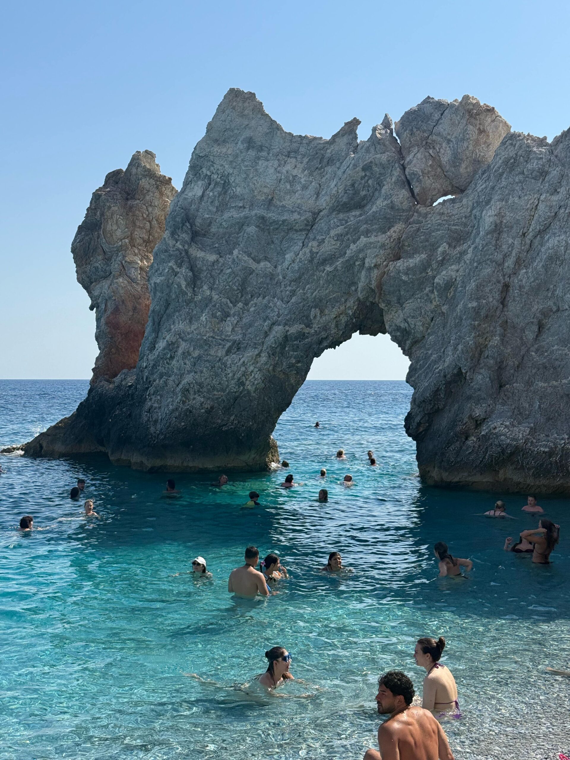 We spent the day on beautiful Skiathos, first with a guided tour, then time to ourselves. Think: wandering the cobbled streets, grabbing iced coffee at a waterfront café, dipping into boutiques, and relaxing beachside. It was one of those golden, slow-paced travel days you never want to end.