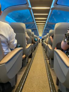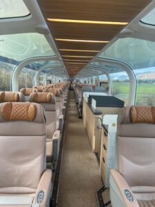 Once on board you are shown to your pre assigned seat that are all forward facing, each seat is very spacious and comfortable and has a huge panoramic window.